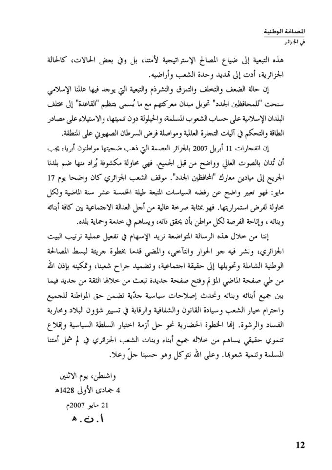 المصالحة الوطنية في الجزائر: خطوة حضارية نحو حل أزمة اختيار السلطة السياسية